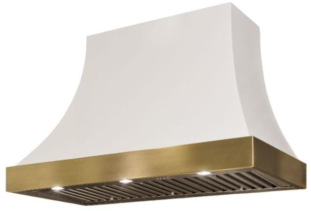 AGA Cascade 36" White Wall Mounted Range Hood with Polished Brass Trim