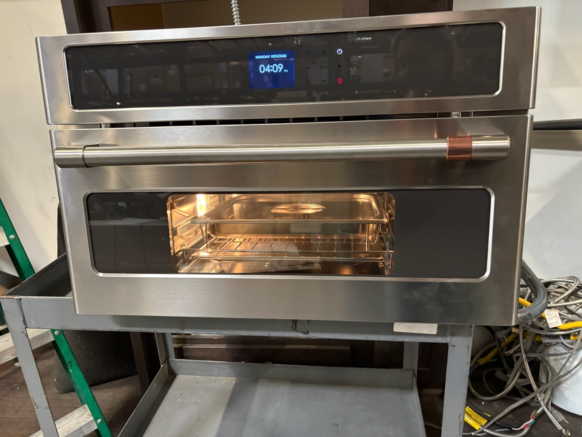 This oven is equipped with combination cooking mode, combining convection baking, broiling and roasting with steam cooking.