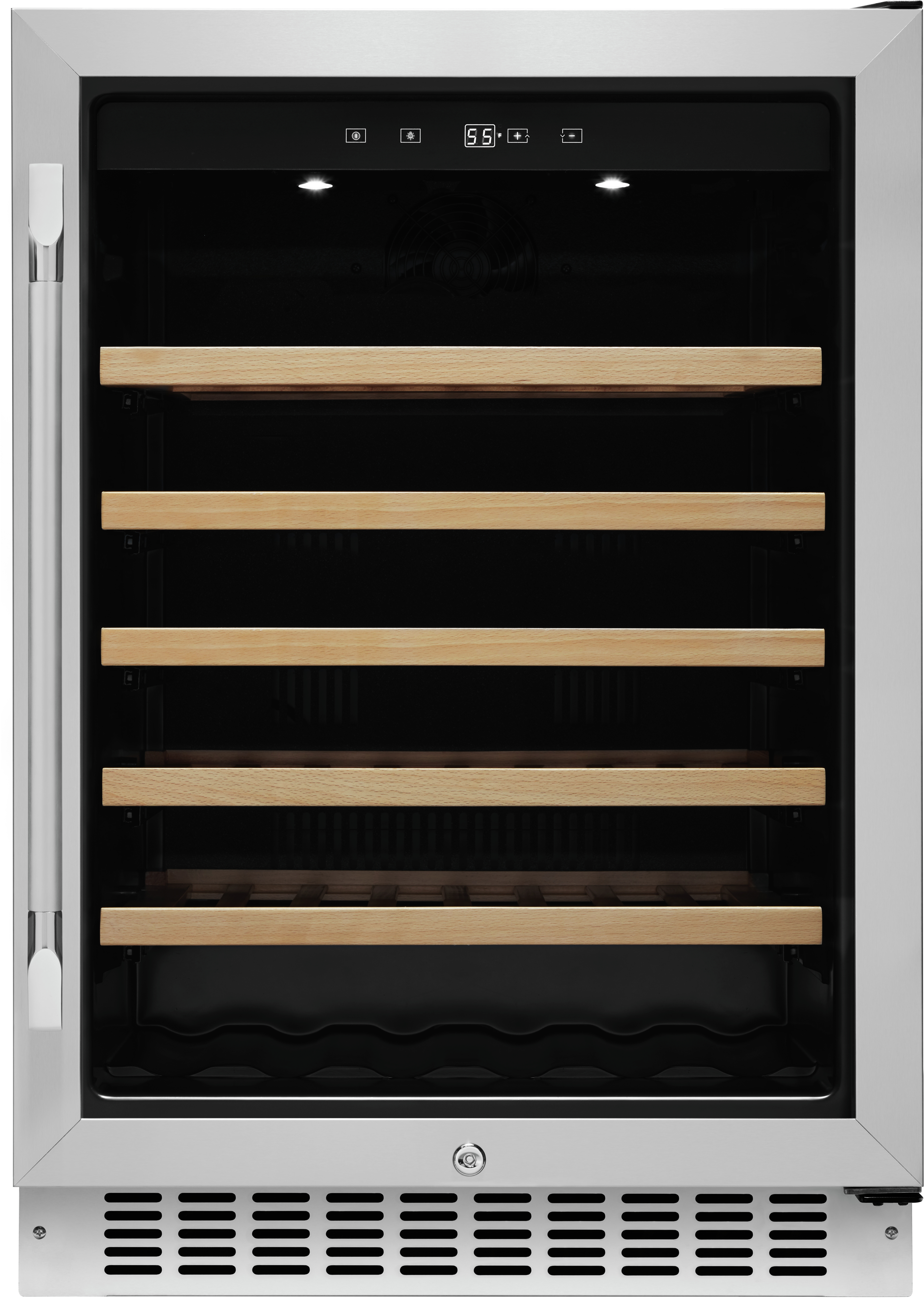 Single zone holds up to 54 bottles (750 ml) and double zone holds up to 45 bottles (750 ml).