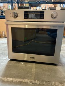 The 30" Single Wall Oven includes the Dual Four-Part Pure Convection for reduced cooking time and superior consistency with zero flavor transfer. A Wi-Fi enabled 7" LCD touch control panel and LED illuminated knobs provides convenience and the ability to use SmartThings integration for communication between appliances as well as remote monitoring and operation.Read More