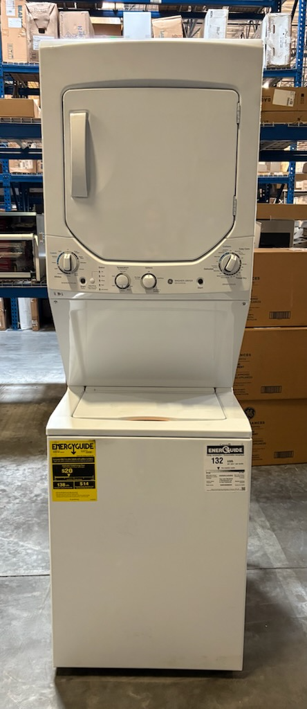 GE® Unitized Spacemaker® White On White Stack Laundry with 2.3 DOE cu. ft washer capacity, 4.4 cu. ft. gas dryer capacity, 12 wash cycles and gas fuel type. Serial ending in 215CRead More