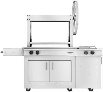 Harness the rugged power and incomparable flavor of wood fire grilling. The Gaucho Grill's gas starter system starts a roaring fire in minutes and food can be raised and lowered above the heat using the 30-inch spoked wheel. Prepare to be captivated.Read More
