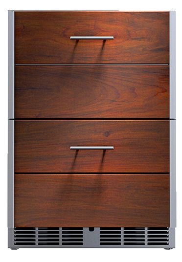 Arcadia Series: 24-inch wide, outdoor-rated, undercounter freezer with two drawers. Oiled Ipe wood overlay drawers. 304 stainless steel. Appliance cabinets and back panels available.Read More