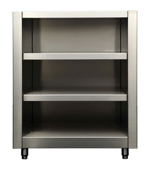 Signature Series: Open shelf, 27-inch wide storage cabinet without door. Three 18-inch-deep, fixed shelves. Marine-grade stainless steel. Toe kicks available.Read More