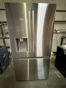 LG 36 in. 23.7 Cu. Ft. PrintProof™ Stainless Steel Counter Depth MAX™ with Zero Clearance™ 3-Door French Door Refrigerator with Thin Door Design featuring slim in door ice and water dispenser and new hybrid handles. Serial ending in R438Read More