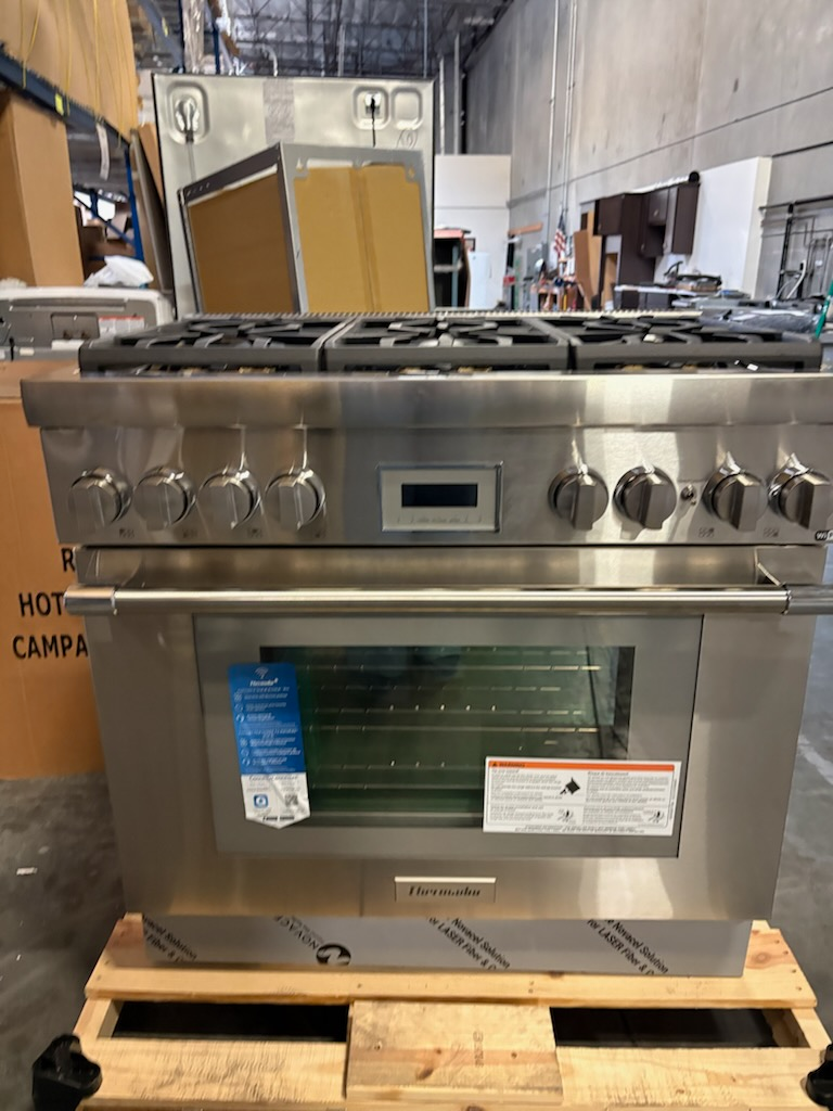 Our 36-inch Pro Harmony Range gives you six Star® Burners - 2 with ExtraLow®, and connected oven for remote control and monitoring. The perfect blend of professional grade cooking with a New Contemporary Design that will fit seamlessly into any Kitchen style with a color TFT interface for a full range of cooking functions.Read More