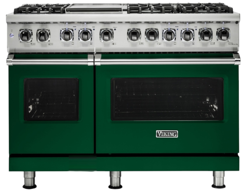 The Viking® Ivy 48" Self Cleaning Liquid Propane Dual Fuel Range with Griddle combines luxury and performance. Featuring a spacious gas cooktop, an self-cleaning oven, and a built-in griddle, it offers precise cooking control and a stylish finish for any kitchen.Read More