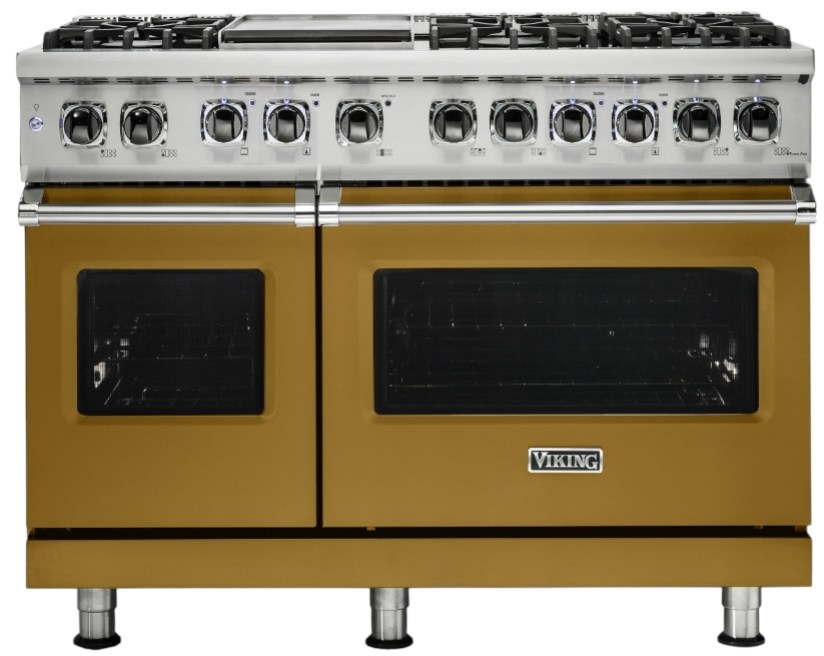 The Viking® Golden Hour 48" Self Cleaning Liquid Propane Dual Fuel Range with Griddle combines luxury and performance. Featuring a spacious gas cooktop, an self-cleaning oven, and a built-in griddle, it offers precise cooking control and a stylish finish for any kitchen.Read More